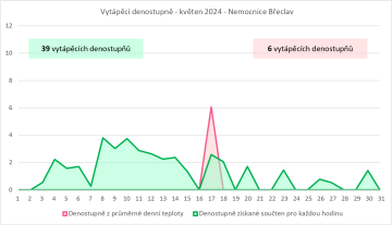 V květnu 2024 evidujeme při výpočtu pro každou hodinu 39 vytápěcích denostupňů, zatímco u tradičního výpočtu pouze 6 vytápěcích denostupňů. To je o 33 denostupňů méně, což představuje pokles o 85% oproti skutečnosti.